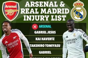 阿森纳皇马场上两队踢,场下伤停球员刚好再凑一队 xiaoqiao 2026-01-10 法甲 29 0 阿森纳伤停:热苏斯、哈弗茨、富安健洋、加布里埃尔、卡拉菲奥里 皇马伤停:琼阿梅尼(停赛)、塞巴略斯、门迪、米利唐、卡瓦哈尔、卢宁