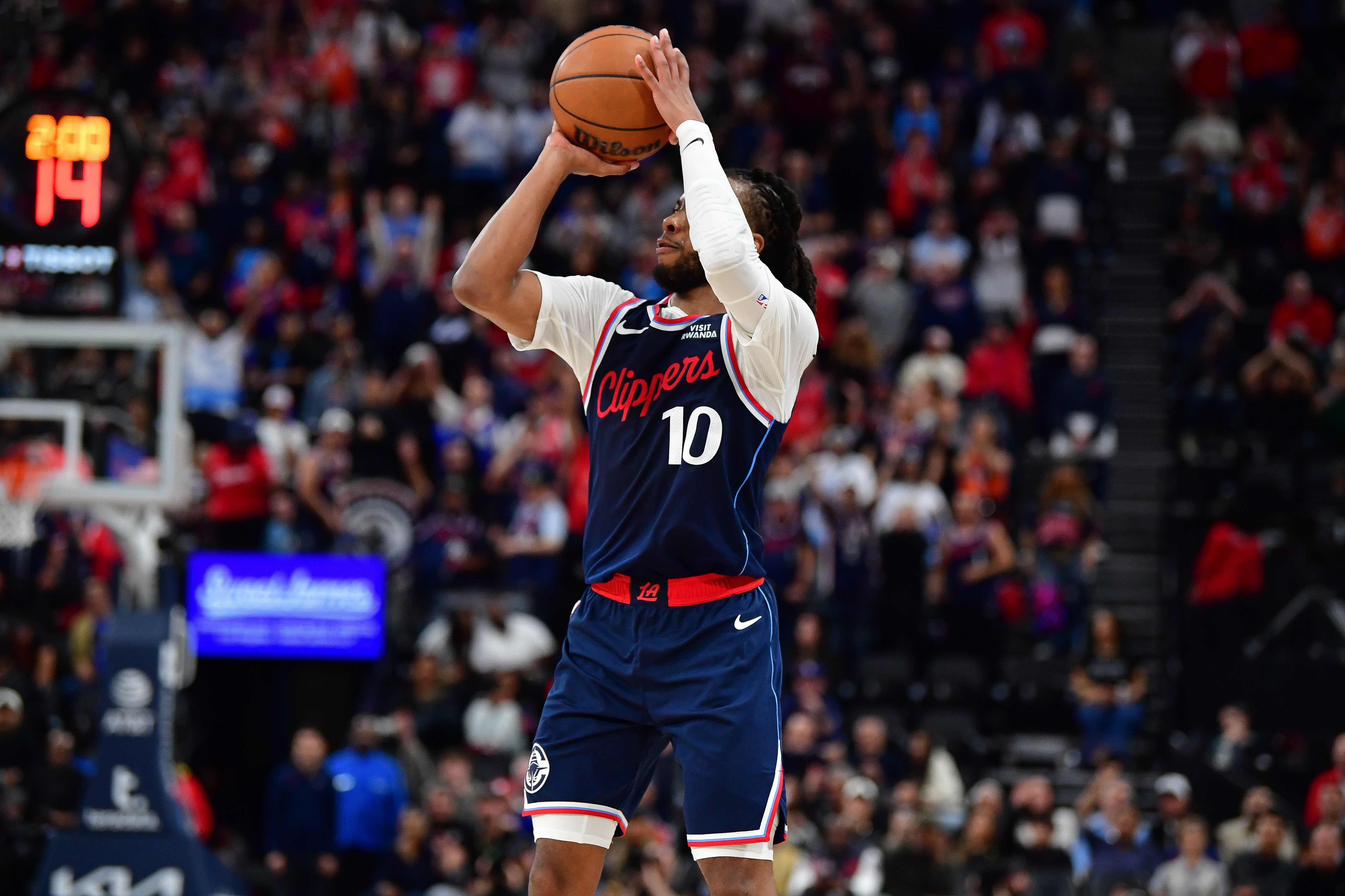 据统计,加兰代表快船出战的比赛12胜5负,场均20.4分6.4助攻1.1抢断,三项命中率49/46/84%,场均正负值+7.5!