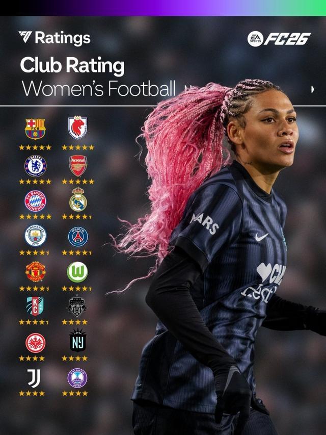 FC26俱乐部评级公布:皇萨军城枪、巴黎、拜仁七队被评五星